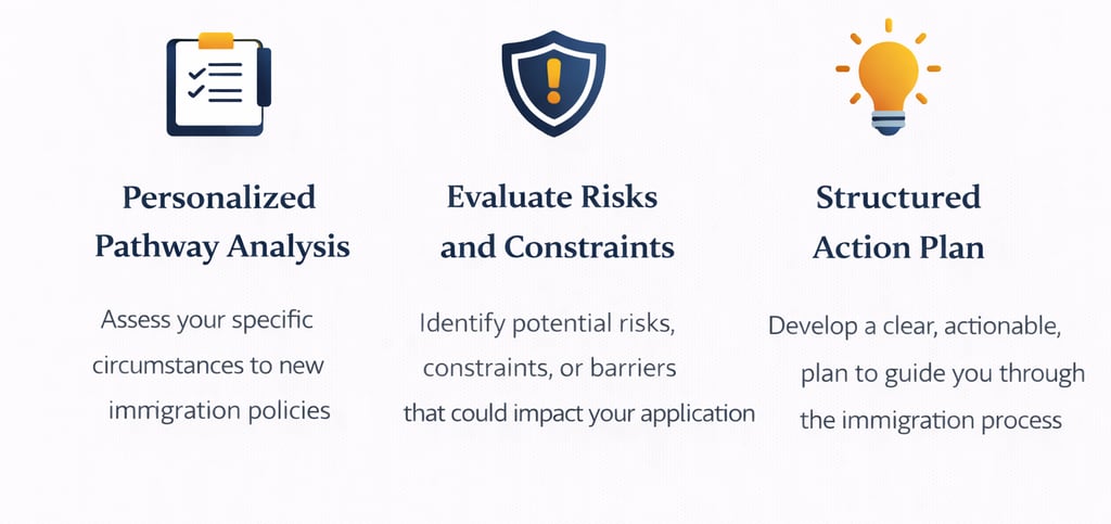 Understanding the best way forward begins with a Strategy Assessment. This focused consultation provides a structured evaluation of your situation, helping you clarify your options, identify risks and constraints, and define a practical path forward based on your specific circumstances.